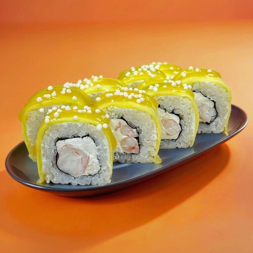 Состав: Рис, Нори, манго, креветки, сливочный сыр, соус манго