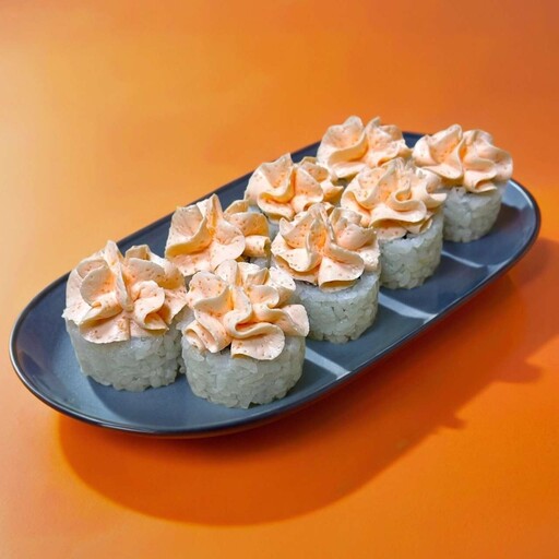 Состав: Рис, нори, куриное филе, кимчи паста, сливочный сыр, такуан, соус спайси