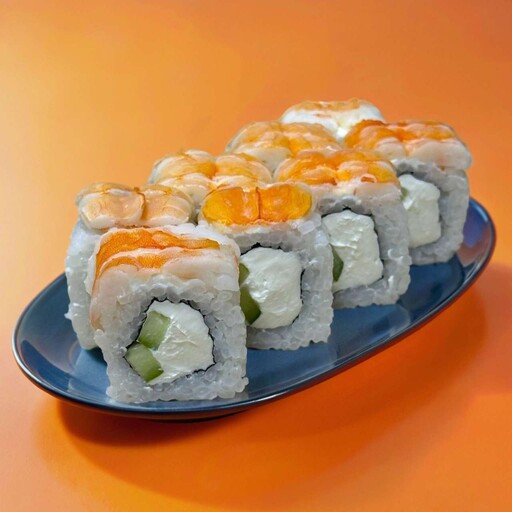 Состав: Рис, нори, креветки, сливочный сыр, огурец